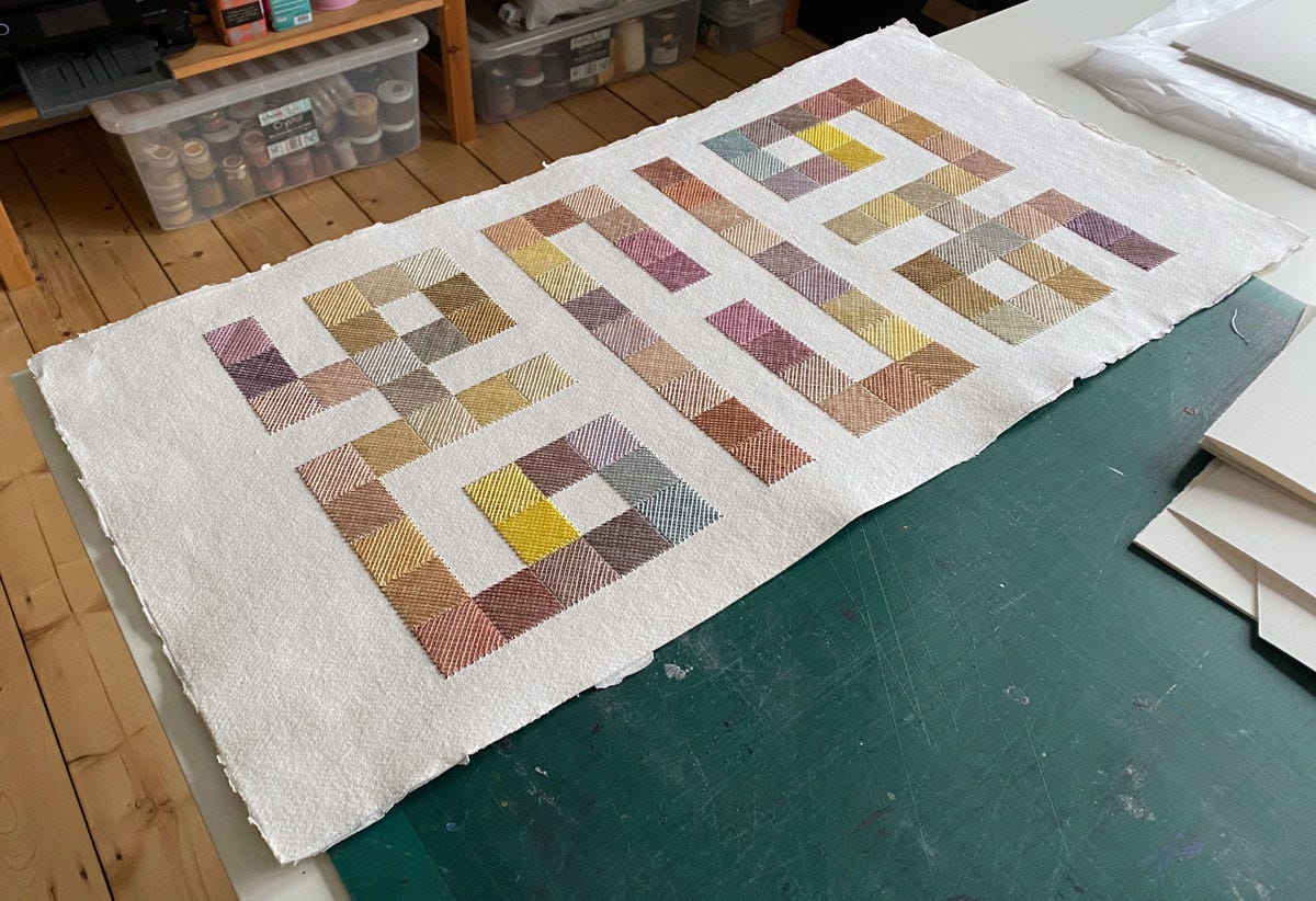 I’ve been deeply buried under a mountain of research for the revision of my book on art technology of the Islamic Golden Age, but alongside deciphering manuscripts I have continued the work on the piece that was the subject of Receiving Colour, keeping an eye out for dye sources even as winter deepened. To my surprise, I found enough to complete the piece just as spring started to make itself felt. So here’s the rest of it, and the finale…